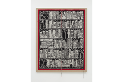 Image: Lisa Anne Auerbach, Ideology and Utopia, 2018. Merino wool stitched onto stretched linen.