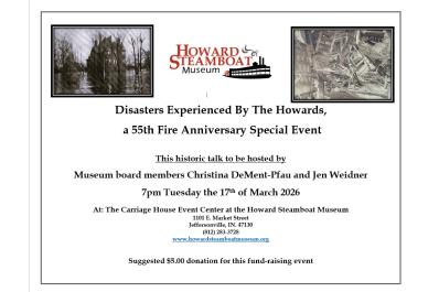 The Howard Steamboat Museum is pleased to present an engaging and informative illustrated talk by Christina DeMent-Pfau and Jen Weidner titled “Disasters Experienced by the Howards” on Tuesday, March 17, 2026, in the Carriage House Event Center at the Howard Steamboat Museum.