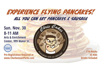 Experience flying pancakes with host Chris Cakes who serves up pancakes with an attitude! You're welcome to wear holiday pajamas and join us for a delicious breakfast. Tickets are $10/adult, $5/kids 12 and under and includes all you can eat pancakes, sausage, and drinks. This event is limited to 60 tickets.