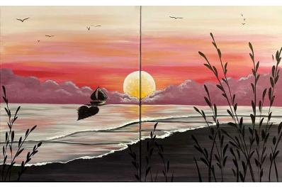 In this class, our instructor will guide you step-by-step through creating this beautiful seaside scene, making it approachable for all skill levels. Whether you’re new to painting or a returning guest, you’ll enjoy learning blending techniques and adding simple details that bring the sunset and water to life. It’s a relaxed, social experience that’s perfect for friends, couples, or anyone looking to unwind with a creative escape.